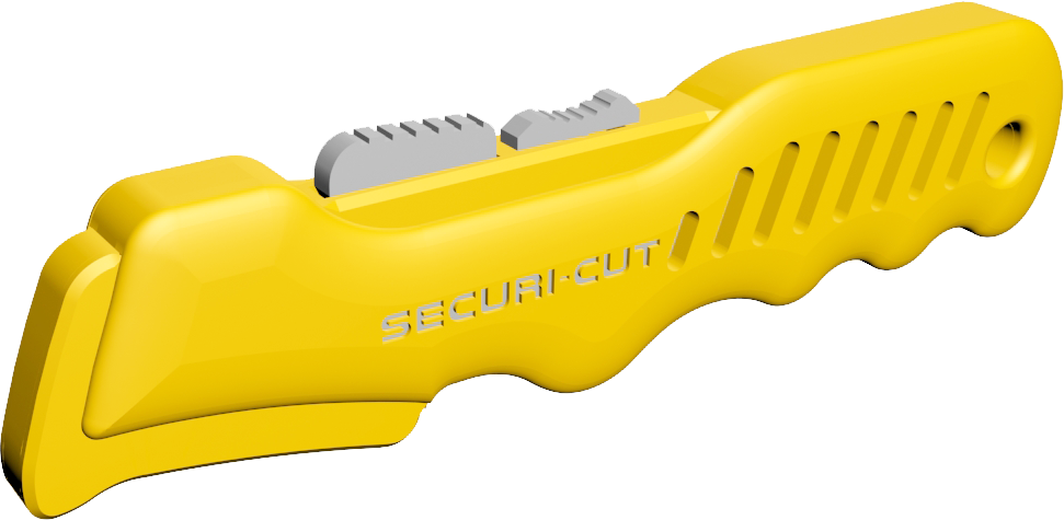 Ce couteau de sécurité est un cutter à lame auto-rétractable fabriqué à partir de plastique recyclé et biodégradable. La lame n’est pas changeable, afin d’éviter à l’utilisateur des manipulations à risques et à l’abandon sans précaution des lames usagées. Pour prolonger sa durée d'utilisation, sa lame est de qualité haut de gamme, en acier de grade SK5 (identiques aux lames des couteaux de survie). Elle est trapézoïdale. Le Sécuricut est conçu pour protéger son utilisateur contre le risque de blessures. Tant que la sécurité n’est pas débloquée, la lame reste logée à l'intérieur du cutter. L'index se loge en butée dans l'espace incurvé prévu à cet effet, l'empêchant ainsi de glisser vers la lame. Sa conception ergonomique diminue les micros-traumatismes des mouvements répétés.